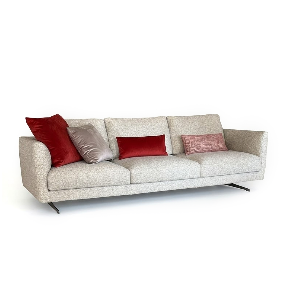 Il divano Melbourne è pensato per chi desidera un design contemporaneo e leggero, capace di valorizzare l’ambiente con eleganza discreta. Le linee pulite e le proporzioni slanciate, accentuate dai piedini sottili, creano un effetto visivo arioso e raffinato.