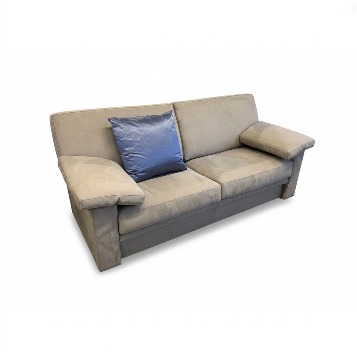 Il rivestimento in tonalità neutre e calde si integra facilmente con ambienti moderni, minimal o più classici. Un divano versatile, pensato per vivere il soggiorno in modo naturale e rilassato.